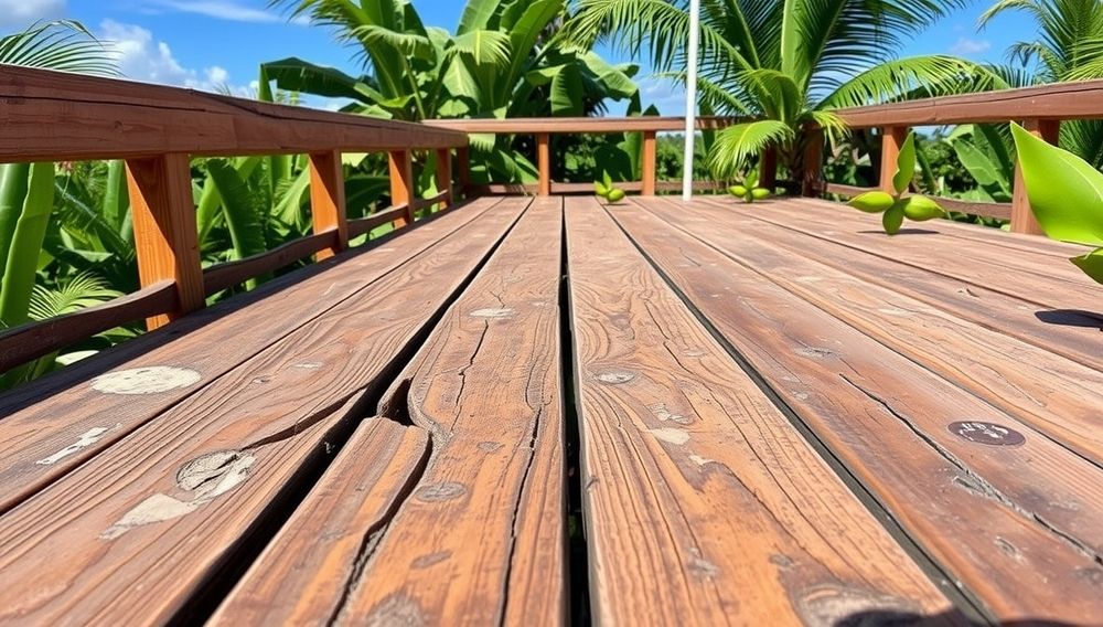 Le climat tropical, l’humidité, les UV et les fortes pluies font des ravages sur le bois. Et oui, même les meilleurs bois peuvent souffrir si on ne les pose pas dans les bonnes conditions et avec les bons produits.